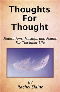 In Thoughts For Thought: Meditations, Musings & Poems For The Inner Life, Rachel Elaine brings her own style of insightful wisdom and common sense, with a dash of heart and soul, to each page of thoughts and poems. Divided into two sections – one consisting of 192 meditations, musings, thoughts and aphorisms, and the other section containing over 40 poems, Thoughts For Thought will inspire you to seek the inner wisdom within your own life.