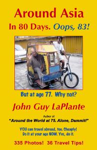 John Guy LaPlante, Septuagenarian extraordinaire, has done it again! Following his earlier book, "Around the World at 75, Alone Dammit", he has written, "Around Asia in 80 Days, Oops, 83", at the tender age of 77!